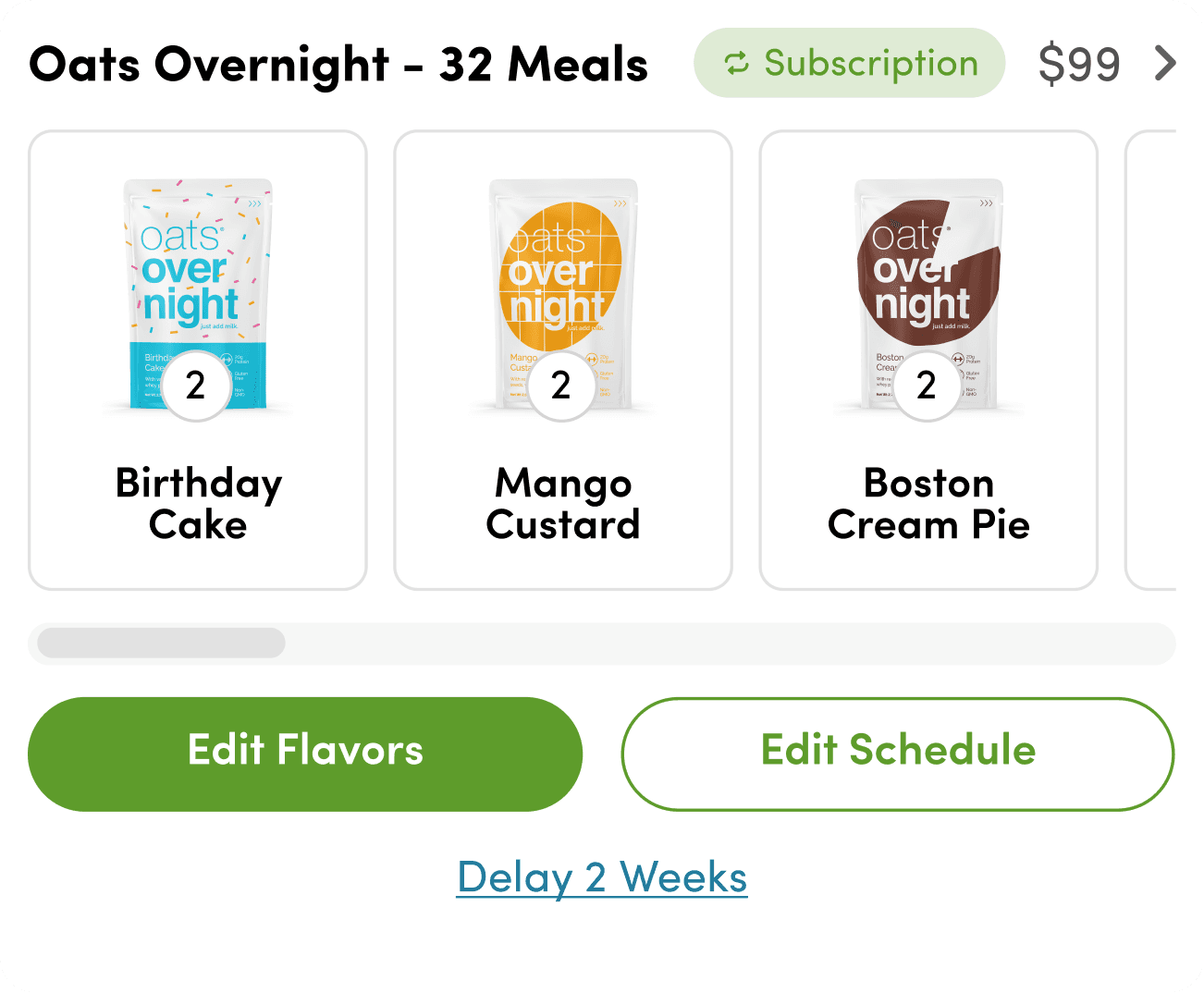 Why the App was Created: Oats Overnight provides D2C subscription products and had a very simple flavor management system on the .com domain. Before I joined, Oats used freelancers to start building a separate experience outside Shopify. The Shopify store was built for acquisition, yet 30k+ returning customers returned each month just to swap flavors… and the acquisition-focused flow didn’t serve them at all. Customers constantly reached out to our CS team for help with simple actions, due to clunky out-of-the-box management system, which drove up operational costs and frustration on both ends.