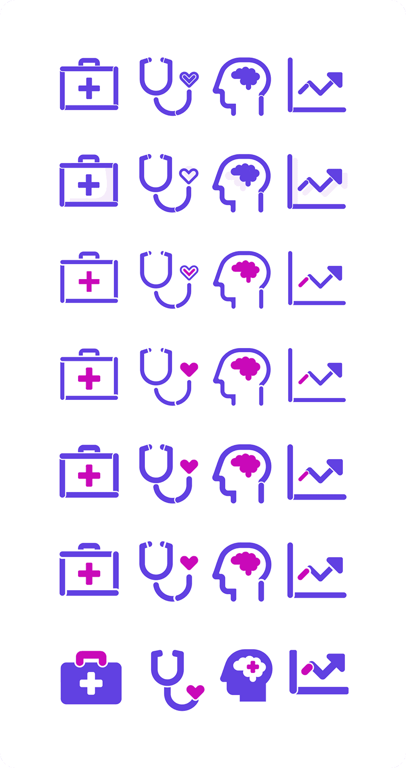 In healthcare, strict contrast standards aren’t optional. To meet compliance and avoid costly accessibility violations, I adjusted line weights and color values across the icon set. Every icon was tested to pass AA and AAA contrast requirements while still preserving the visual style and brand expression.