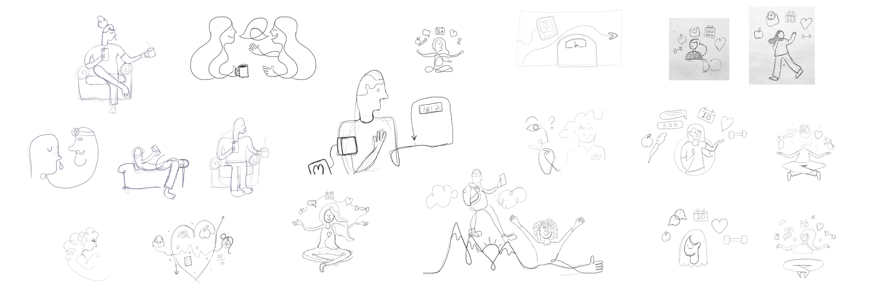 *Images show in this case study are sketches done by me. We hired an independent illustrator to produce the final polished versions for production.